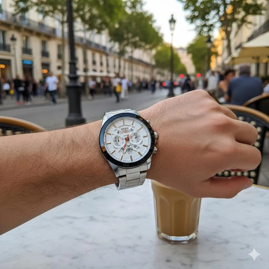 "Precision meets elegance — the CassRay Timepiece. Built for those who value every second, its bold design and intricate dial reflect power, confidence, and timeless style. More than a watch — it’s a statement on your wrist."